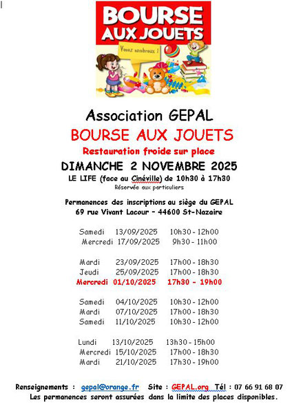 Inscrivez vous auprès du GEPAL aux Jours et Horaires ci-dessous :